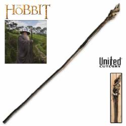 One of the most powerful Wizards in all of Middle-earth, Gandalf the Grey joins the quest to reclaim the Dwarf Kingdom of Erebor and the great treasure that lies within its stone halls from a fire breathing dragon, Smaug the Terrible. Gandalf’s staff appears to be a natural piece of wood, but the crown of the shaft holds something supernatural. Within the crown, the wood has grown around a hollow, white lattice-shaped bulb. The lattice is vaguely Elven in design, and holds a great power. At Gandalf’s command, he can cause the crown to illuminate and light his way at night, or to spark a blue flame to ignite fire. The staff is also imbued with a great strength, allowing Gandalf to shatter stone with one strike. This authentically detailed replica is a reproduction casting of the actual filming prop built by the production Art Department in New Zealand and used in the motion picture, THE HOBBIT: AN UNEXPECTED JOURNEY. United Cutlery, industry leader in fine movie reproductions, has meticulously recreated the prop using only the finest grade materials and craftsmanship. Close attention to coloring and detail was a top priority. The polyresin Staff is 73” overall, featuring finely cast details and authentic hand painted coloring. It is presented with an Elven styled wall display featuring Gandalf’s “G” rune, and includes a certificate of authenticity.