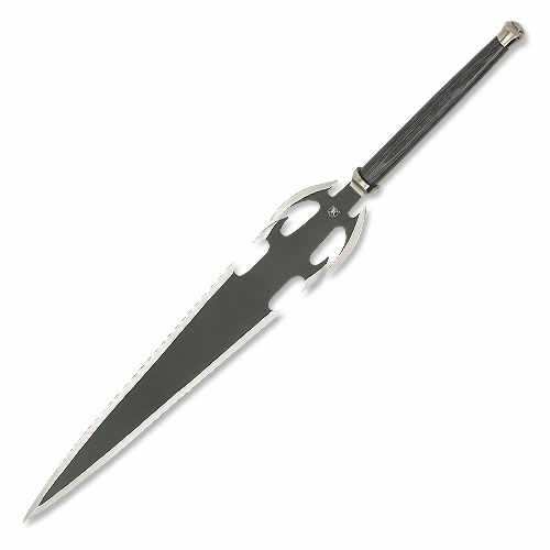 This classic two handed fantasy sword is equipped with a 27 5/8" stainless steel blade with anodized black coating adding to the fantasy appeal. The hardwood handle is black grain and provides a sturdy grip. The ultimate fantasy sword at an unbeatable price. 39 1/2" overall.